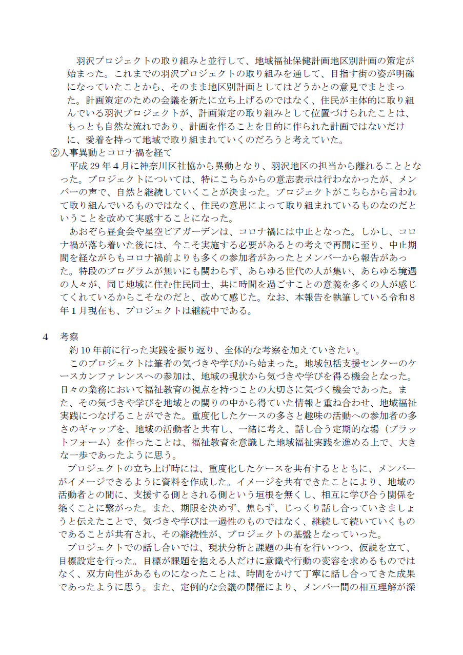 梅木博志/事例を“福祉教育”の視点で紐解く 「孤立死0(ゼロ)を目指して~羽沢プロジェクト~」 2026年2月20日まちづくりと市民福祉教育阪野 貢 共有: Facebook で共有 (新しいウィンドウで開きます) Facebook X で共有 (新しいウィンドウで開きます) X Line で共有 (新しいウィンドウで開きます) Line