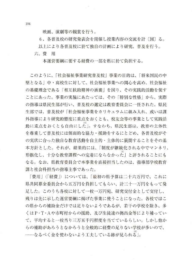 〇当時の運動は、疲弊する農村社会の再生(地域福祉的課題)に対して、教育の側からいかなる実践を提示したのか、またそれが戦時体制の進展のなかでいかに変質し、何を喪失したのか。その点を考察することは、現代の「まちづくりと市民福祉教育」における住民主体形成のあり方を問ううえで、ひとつの示唆を与えるものである。