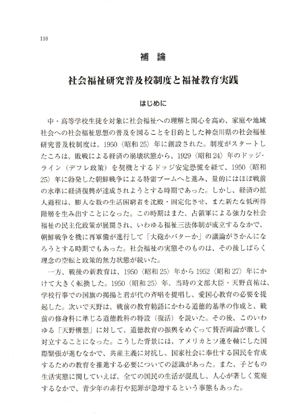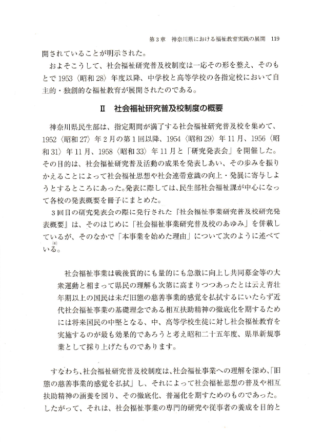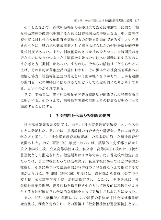 〇福祉教育の歴史と理論と実践は、相互の関係にあり、歴史研究と理論研究と実践研究は互いを無視しては成り立たない。とりわけ歴史研究は、福祉教育研究の基本に据えられるべきものである。しかし、福祉教育研究は、これまで、福祉教育の歴史に無関心であったといわざるを得ない。
