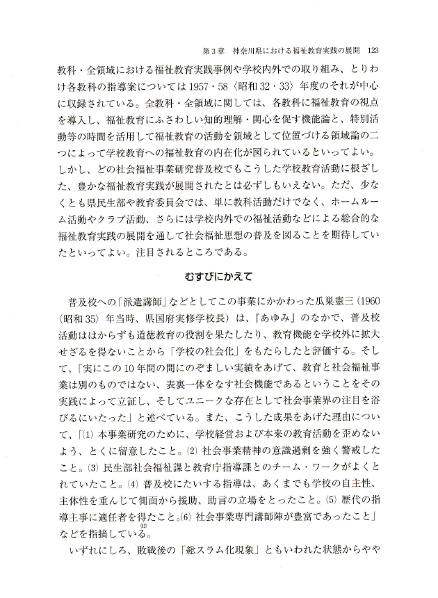 『戦後初期福祉教育実践史の研究』角川学芸出版、2006年4月、101~125頁。